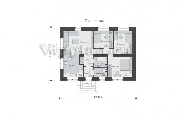 | Размеры дома: | 12.4м×8.7м |